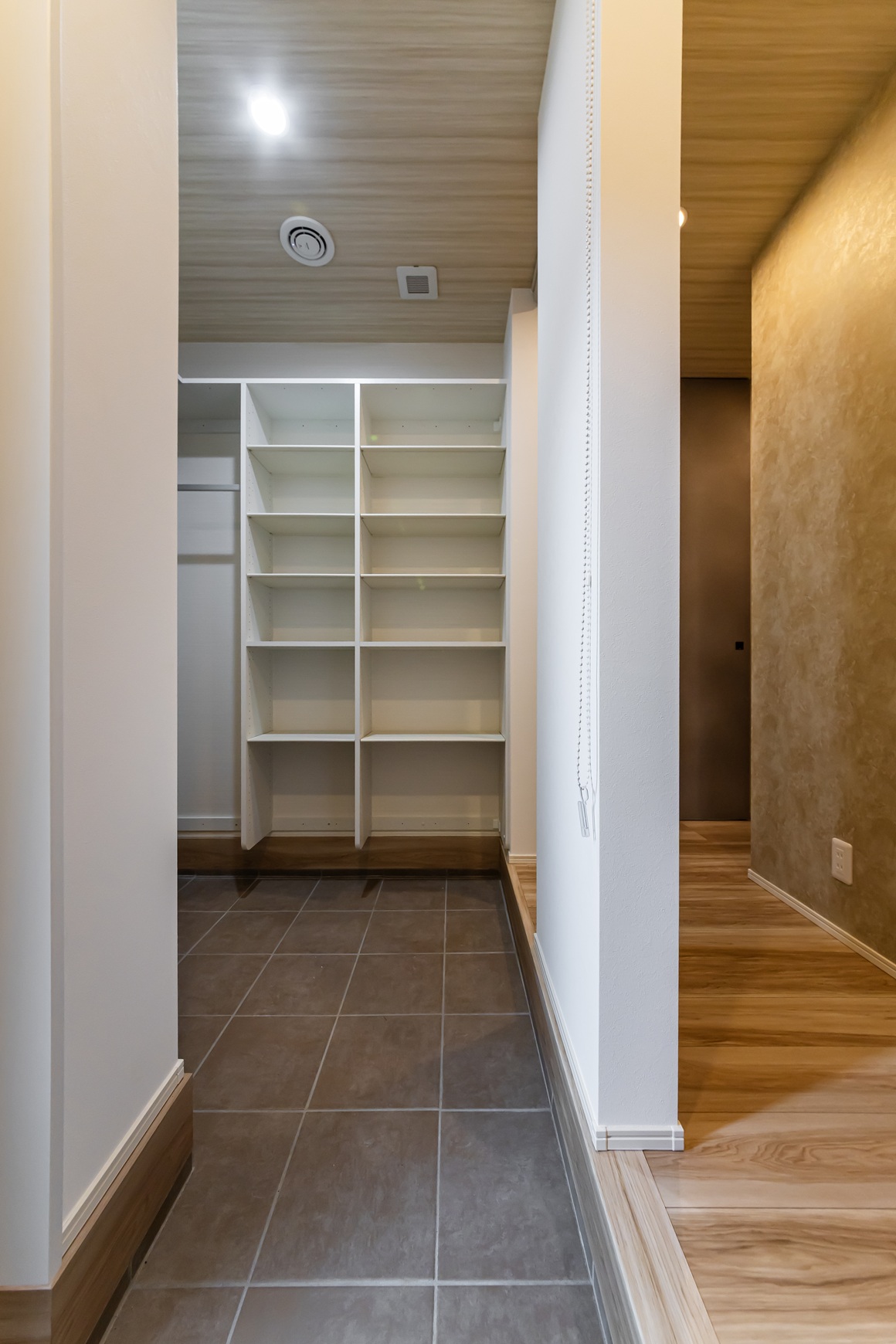 入ってすぐに広がる清潔感と落ち着きのある空間が、住まいの第一印象をやさしく演出します。玄関横には、土間続きの大容量シューズクロークを完備。